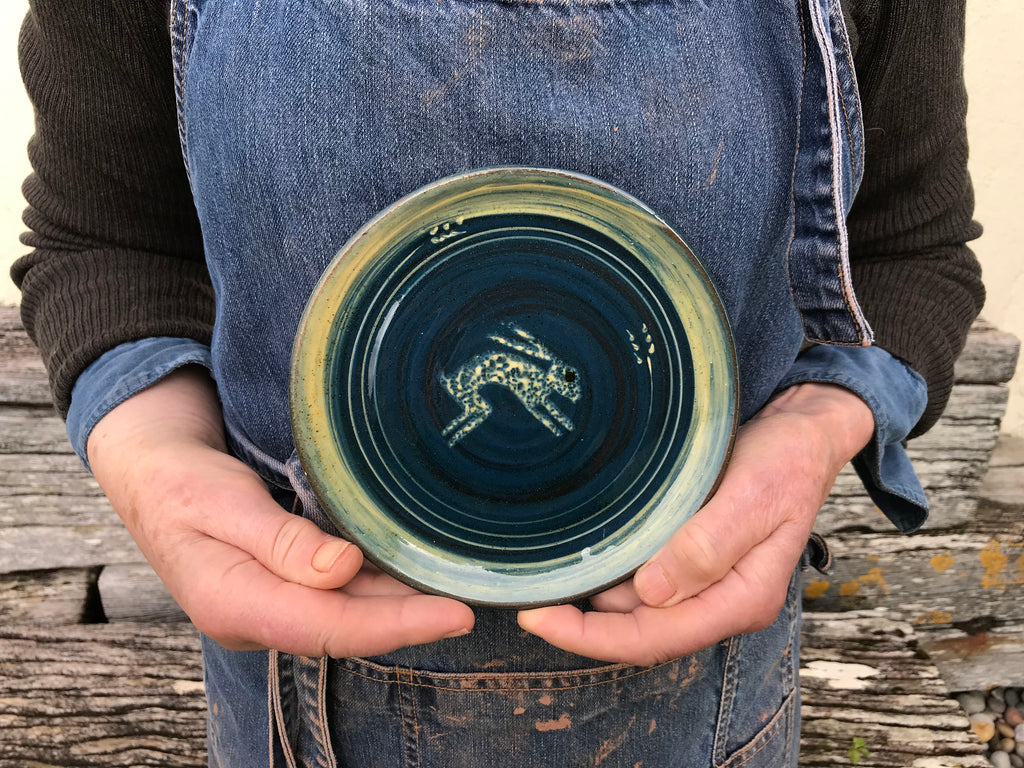 Dark Blue Side Plate with Hare